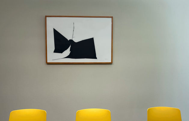 Über beide Etagen verteilt bespielen Werke von internationalen und lokalen Künstler:innen den Raum und beeinflussen das tägliche Miteinander. Bilder von Jakob Veigar Sigurdsson (Island) und Markus Oehlen (Deutschland) bringen abstrakte Dynamik, während Fotografien von Benjamin Eichhorn und minimalistische Papierarbeiten von Anat Stainberg eine feine Gegenstimme liefern.