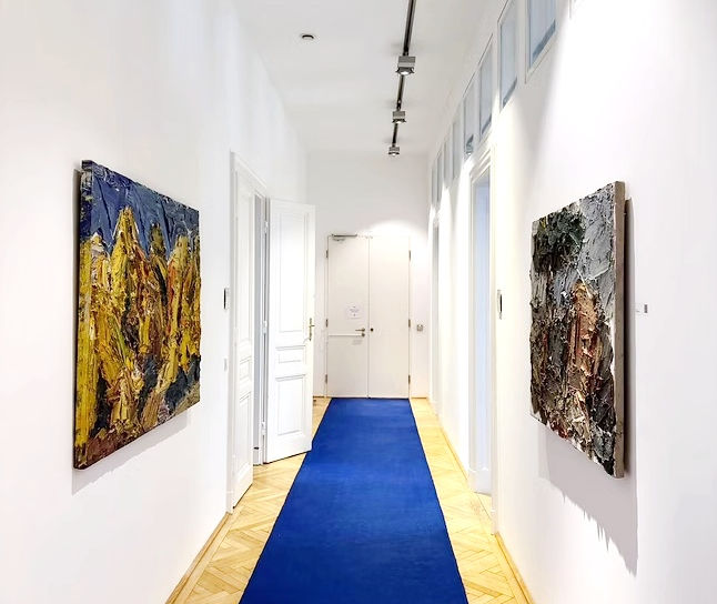 Die künstlerischen Arbeiten sind im gesamten Gebäude verortet und greifen gezielt in die bestehenden Abläufe ein. Sie strukturieren Übergänge, setzen Akzente in Besprechungsräumen und begleiten Arbeitsbereiche. Die Auswahl folgt keiner einheitlichen Bildsprache, sondern bringt bewusst unterschiedliche Positionen zusammen – von jungen, in Wien arbeitenden Künstler:innen bis hin zu international etablierten Namen.
