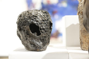 Norbert Völker lässt die Materialien selbst sprechen, indem er mit Lehm, Erde oder Stein skulpturale Objekte schafft, die von ihrer eigenen Entstehung erzählen. Die Bearbeitung und Umwelteinflüsse hinterlassen ihre Spuren: Risse und Strukturen offenbaren das „Wesen“ dieser Stoffe und zeugen von den Prozessen, die sie geprägt haben. In dieser Wechselwirkung zwischen Verformung und sedimentierter Struktur entfaltet sich ein fragmentierter, verletzter Charakter